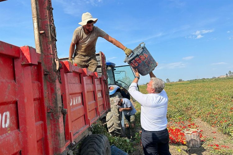 AK Parti Balıkesir Milletvekili ve Dışişleri Komisyonu Başkanvekili Dr. Mustafa Canbey, Susurluk ilçesi Göbel Mahallesi’nde çiftçileri ziyaret ederek, domates hasadına katıldı