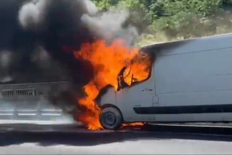 Anadolu Otoyolu Bolu Dağı mevkisinde seyir halinde olan minibüs bilinmeyen bir nedenden dolayı alev aldı.