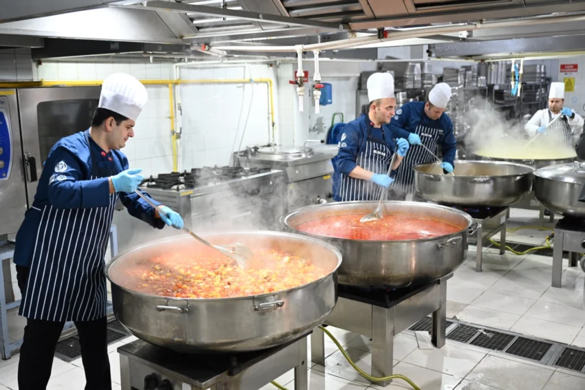 Acemler’deki ana mutfakta usta şefler tarafından hijyenik koşullarda hazırlanan menüler, sabit iftar noktalarına, Kent Lokantalarına ve ilçe iftar programlarına ulaştırılıyor. Günlük 10.000 kişiye sıcak yemek ikramının yanı sıra, teravih namazı sonrası 15.000 adet tatlı dağıtımı yapılıyor. Ayrıca, iftara yetişemeyenler için hazırlanan 4.500 iftariyelik paketi ve 6.000 kişilik sıcak çorba da 14 farklı noktada Bursalılara sunuluyor.