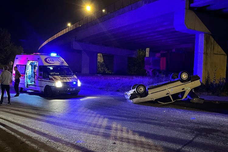 Sefer DEMİR / DÜZCE (İGFA) – Düzce’de meydana gelen kazada ters dönen otomobilden kendi imkanları ile çıkan sürücü yaralandı.