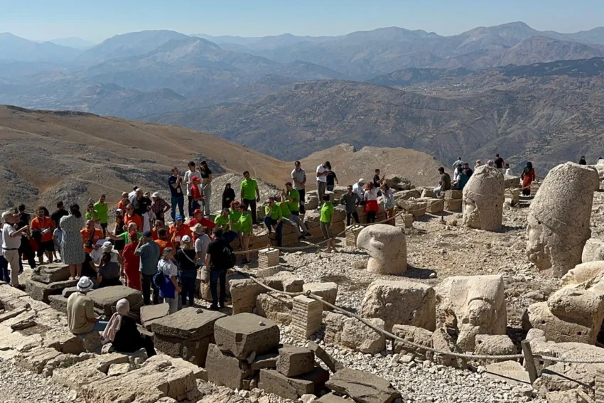 Ferit BİNZET / ADIYAMAN (İGFA) – Commagene uygarlığına ait ören yerlerinden Karakuş tümülüsü ve Roma dönemine ait tarihi cendere köprüsünü ziyaret eden engelliler daha sonra Mehmetçik, rotaryenler ve gençlerin yardım ile zorlu bir tırmanışın ardından Nemrut dağının zirvesine tırmandı.