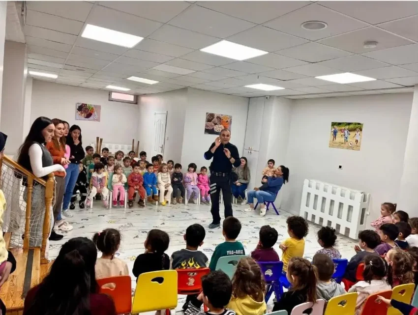 Polis Maskotu ile birlikte keyifli vakit geçiren minikler, hem yeni bilgiler edindi hem de bol bol eğlendi. Etkinlik boyunca çocukların heyecanı ve mutluluğu gözle görülür şekilde artarken, bu tür programların erken yaşta güvenlik bilincinin oluşturulmasına büyük katkı sağladığı belirtildi. Programın sonunda, öğrencilere boyama kitapları hediye edilerek bu özel günün anısına küçük sürprizler yapıldı. Bu jest, çocukların yüzlerindeki gülümsemeyi daha da artırdı.