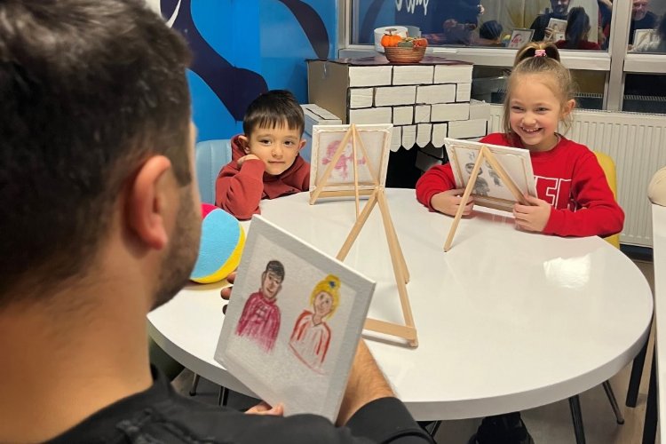 Etkinlikte, babalar ve çocuklar birbirlerinin resimlerini çizerek, eğlenceli anlar yaşadı.