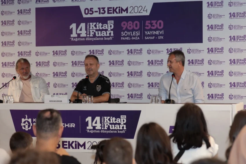 KOCAELİ (İGFA) – 14. Kocaeli Kitap Fuarı bu kez Kocaelispor’un efsane isimleri Taner Gülleri ve Kaan Dobra’yı ağırladı. Taraftarlar Gülleri ve Dobra’yı kendilerine özel pankartlarla karşıladı. Kocaelispor Organizasyon Müdürü Mehmet Açık moderatörlüğünde “Şehrin Umudu Kocaelispor” konulu söyleşi gerçekleştiren ünlü golcüler, Kocaelispor’un ve Kocaeli’nin kendileri için çok özel bir yere sahip olduğunu söyledi.