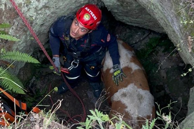 Kayseri Büyükşehir Belediyesi İtfaiye Daire Başkanlığı ekipleri, Talas ilçesinde 3 metrelik kuyuya düşen büyükbaş hayvanı, 2 saat süren başarılı bir çalışma ile kurtardı.