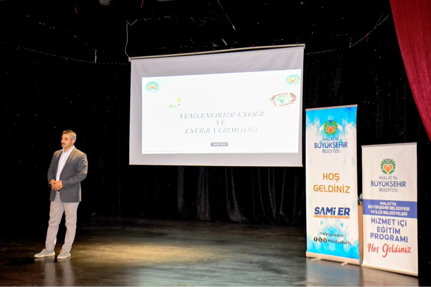 MALATYA (İGFA) – Malatya Büyükşehir Belediyesi Çevre Koruma, İklim Değişikliği ve Sıfır Atık Şube Müdürlüğü ile Fen İşleri Dairesi Enerji Aydınlatma Müdürlüğü tarafından MABESEM konferans salonunda verilen hizmet içi farkındalık eğitiminde “İklim Değişiyor Biz Neden Değişmiyoruz”, “Yenilenebilir Enerji” ve “Enerji Tasarrufu ve Enerji Verimliliği” konularına yer verildi. Eğitim semineri, Büyükşehir Belediyesi Çevre Koruma, İklim Değişikliği ve Sıfır Atık Şube Müdürlüğü çalışanlarından Kimya Mühendisi Özden Şahin ve Fen İşleri Dairesi Enerji Aydınlatma Şube Müdürü Akif Şekerci tarafından verildi.