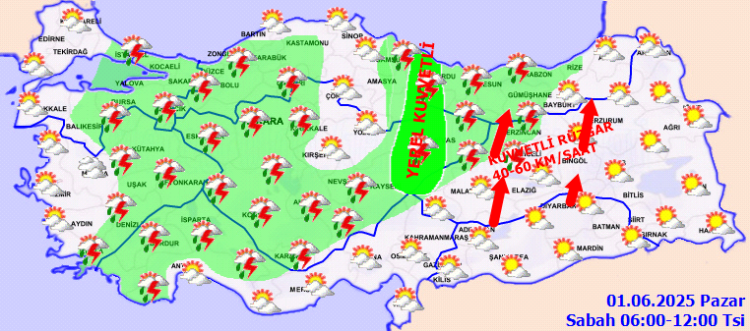 ANKARA (İGFA) – Meteoroloji Genel Müdürlüğü, 01 Haziran Pazar gününe ilişkin hava tahmin raporunu yayımladı.