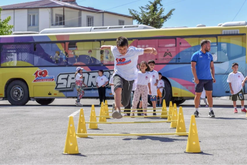 Çocuklara spor sevgisini aşılamak ve sporu sevdirmek amacıyla Mersin Büyükşehir Belediyesi’nin Cumhuriyet’in 100. Yılında ‘Yüzde 100 Cumhuriyet Yüzde 100 Spor’ sloganıyla hayata geçirdiği ‘Sporbüs’ projesi ile kent genelinde sporla buluşmayan çocuk kalmıyor.